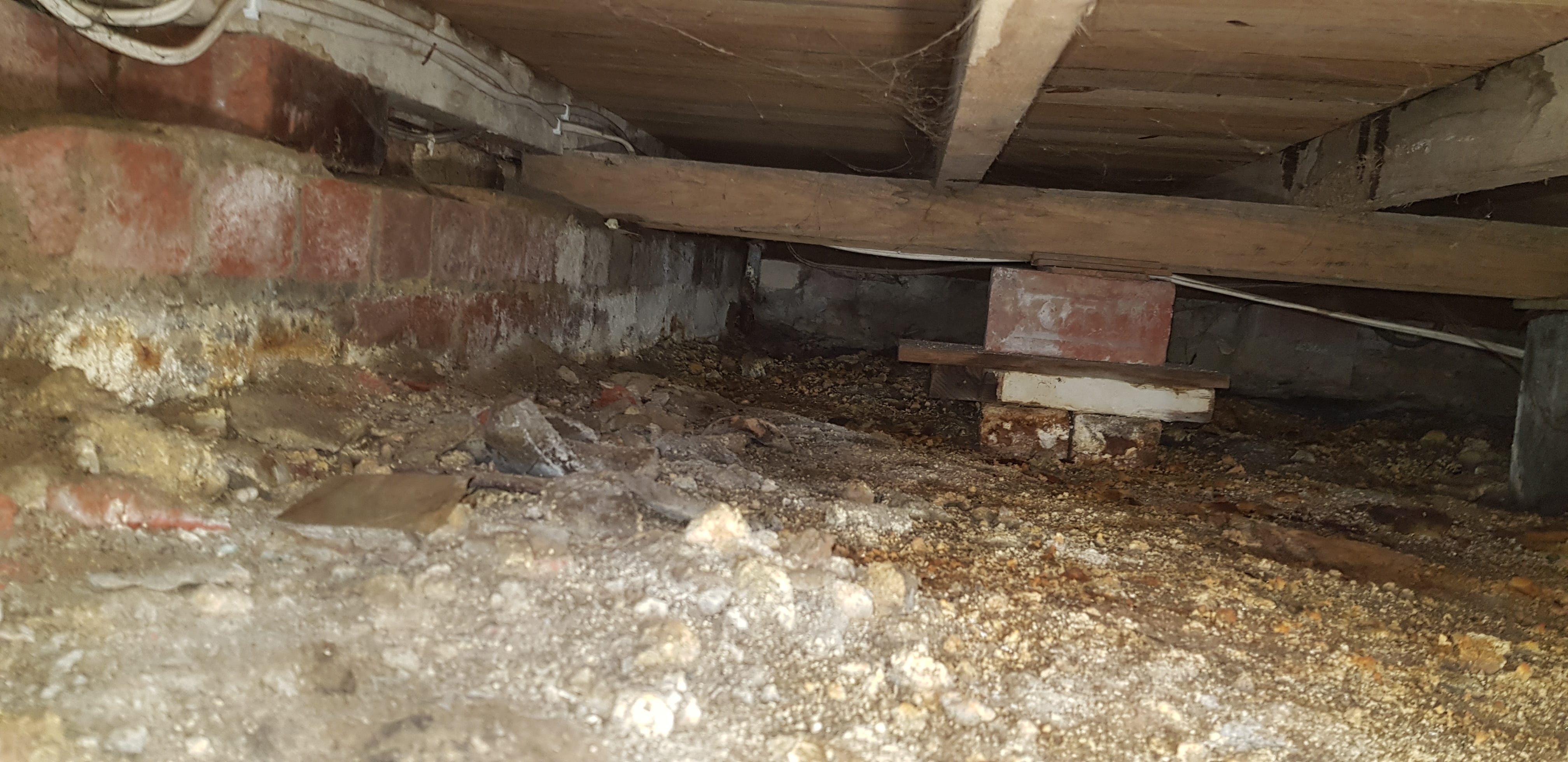 And we hit another wall - literally. Whilst the subfloor for the extension that was built in 1980 was accessible, the old external wall was preventing us from crawling under the rest of the house. Not only couldn’t we get passed the wall, but the clearance between the floor and ground was now only 250mm - very tight!!